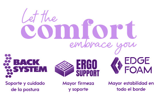 - Soporte ortopédico que protege su espalda, brindando mayor firmeza en la superficie incorporando una capa de espuma Ergo Support®.