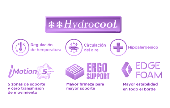 - Máxima Frescura, en la zona lumbar de cada colchón Perfect Sleeper cuenta con una espuma con Hydrocool® para ayudar a absorber y disipar el calor de forma continua, creando un ambiente cómodo y fresco, sin mucho calor o frío.