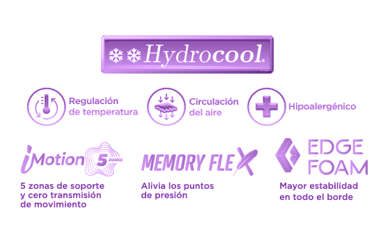 - Cero transmisión de Movimiento, por medio de la incorporación de sistema de resortes I-motion® 5 Zonas, que trabaja de manera inteligente, cada resorte funciona independientemente dando el soporte justo donde el cuerpo lo necesita a la vez que reduce la transmisión de movimientos.