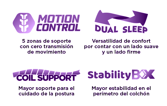 - Motion Control: 5 zonas de soporte con cero transmisión de movimiento